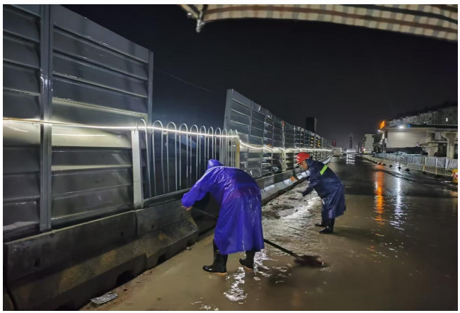 此外,项目部还持续强化监测调度,安排专人密切关注雨情、水情变化,及时调整防汛策略。在隐患排查整治方面,项目部持续推进汛期暑期重大安全风险隐患排查整治工作,对施工现场的排水系统、临时设施、深基坑等进行全面检查,及时消除安全隐患。强降雨期间,项目部加大巡查值守力度,做好力量预置。针对复杂施工点位,增派安全员、技术员、监理员现场旁站,严格把控施工安全。同时,项目部组织人员对周边受影响的居民家中进行扫水等援助工作,保障居民生活不受太大影响。(黄纤雅 冯晓强)
