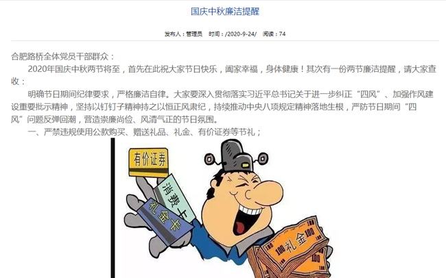 星空外围权威网 > 党群廉政 > 详细新闻“2020年国庆中秋两节将至,首先在此祝大家节日快乐,阖家幸福,身体健康!其次有一份两节廉洁提醒,请大家查收。”