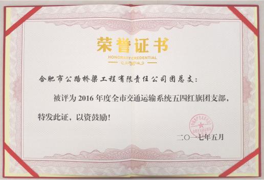 星空外围权威网 > 党群廉政 > 详细新闻 近日,合肥市交通局对2016年度全系统优秀团支部进行了表彰,合肥路桥公司团支部荣获“五四红旗团支部”称号。